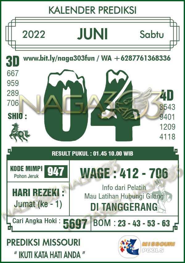 Prediksi Missouri Pools Sabtu 04 Juni 2022 | Web Toto Naga303