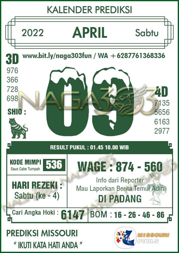 Prediksi Missouri Pools Sabtu 09 April 2022 | Web Toto Naga303