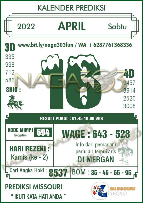 Prediksi Missouri Pools Sabtu 16 April 2022