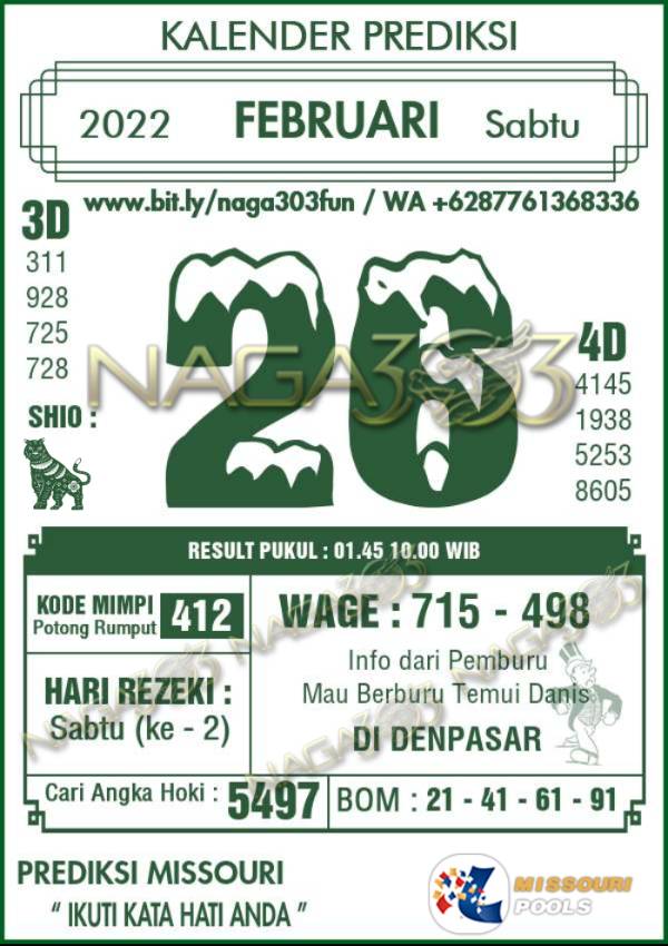 Prediksi Missouri Pools Sabtu 26 Februari 2022