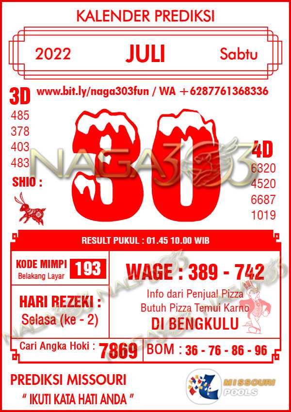 Prediksi Missouri Pools Sabtu 30 Juli 2022 | Web Toto Naga303