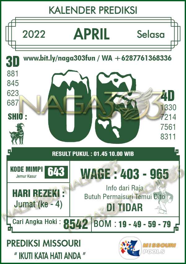 Prediksi Missouri Pools Selasa 05 April 2022 | Web Toto Naga303