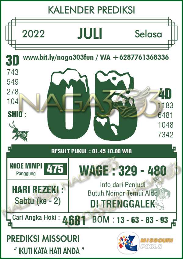 Prediksi Missouri Pools Selasa 05 Juli 2022