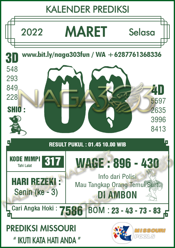 Prediksi Missouri Pools Selasa 08 Maret 2022