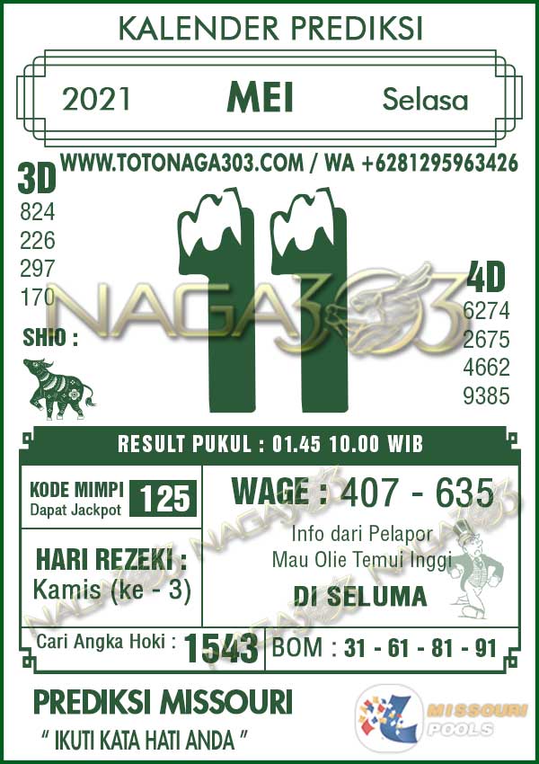 Prediksi Missouri Pools Selasa 11 Mei 2021 | Web Toto Naga303