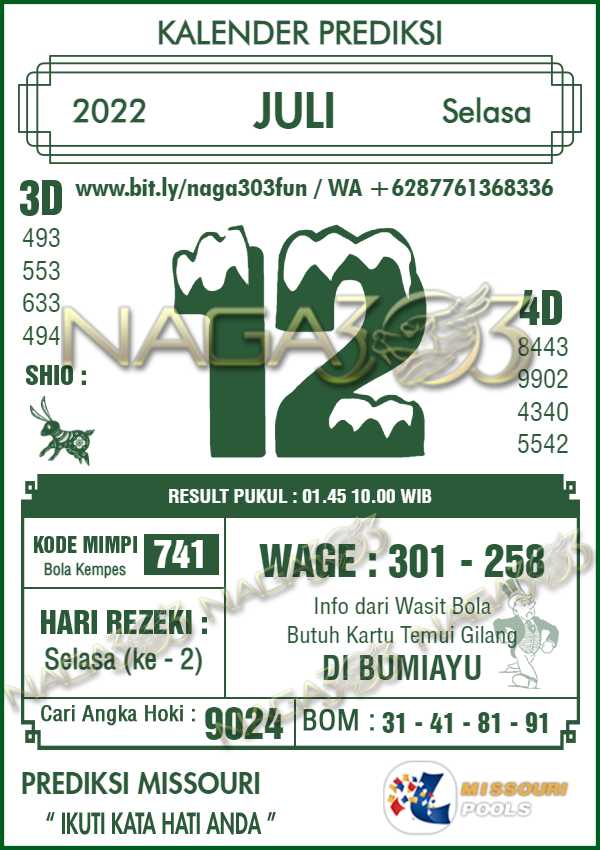 Prediksi Missouri Pools Selasa 12 Juli 2022 | Web Toto Naga303