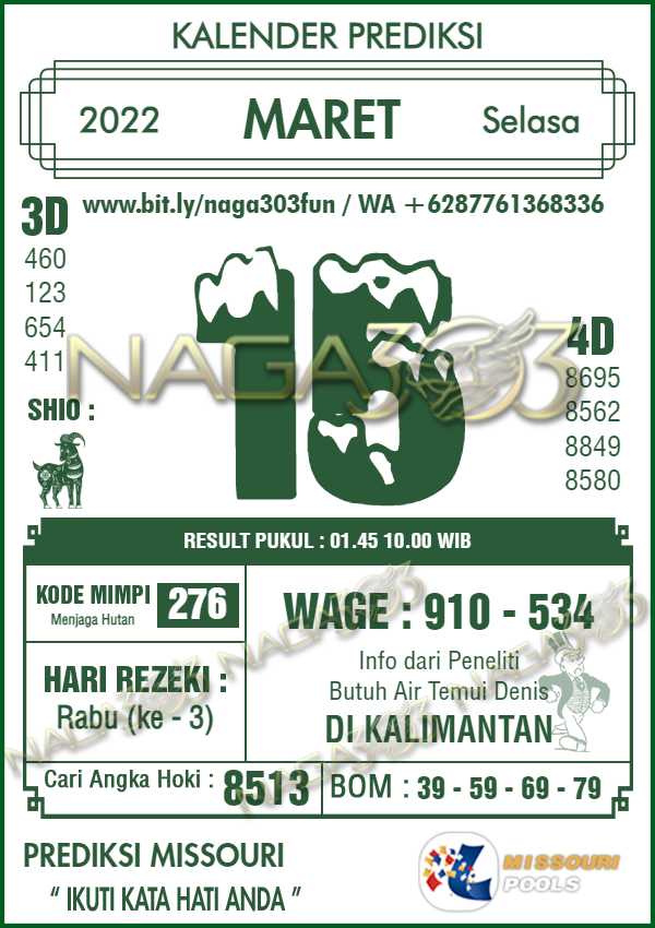 Prediksi Missouri Pools Selasa 15 Maret 2022