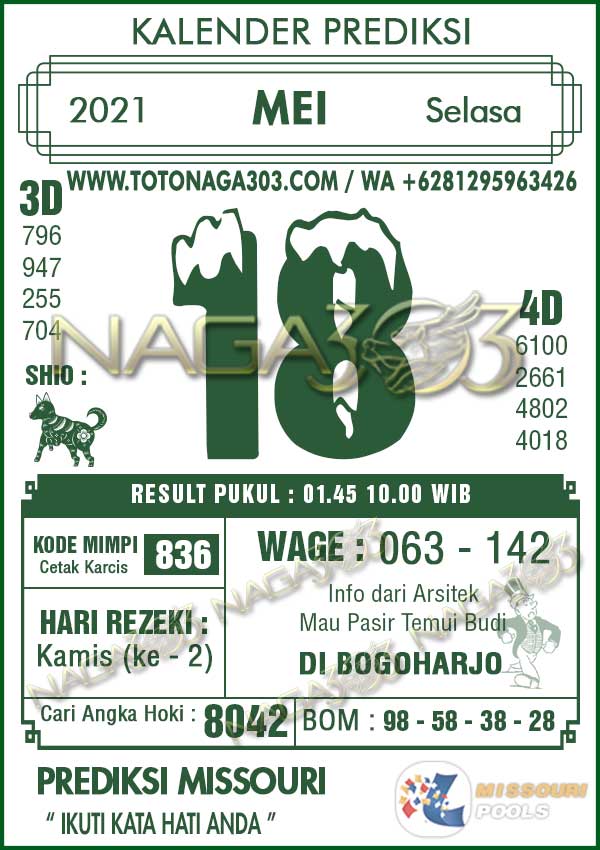 Prediksi Missouri Pools Selasa 18 Mei 2021