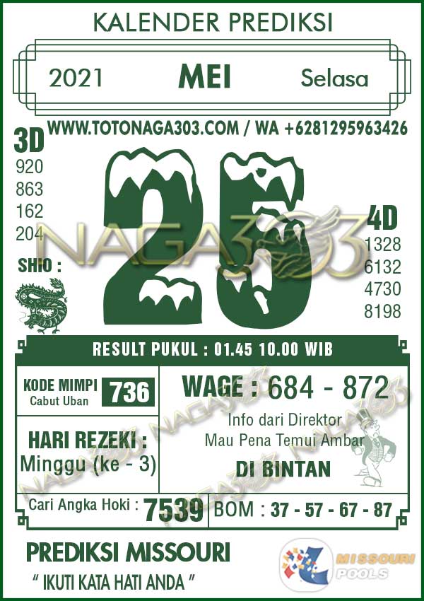 Prediksi Missouri Pools Selasa 25 Mei 2021 | Web Toto Naga303