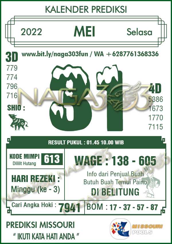 Agen Judi Online Terbesar & Terpercaya, Kami biasa memberikan info yaitu Prediksi MISSOURI POOLS, dimana prediksi ini telah kami racik terlebih