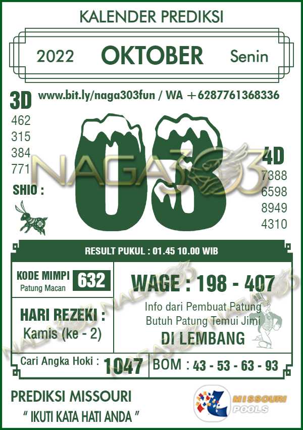 Prediksi Missouri Pools Senin 03 Oktober 2022