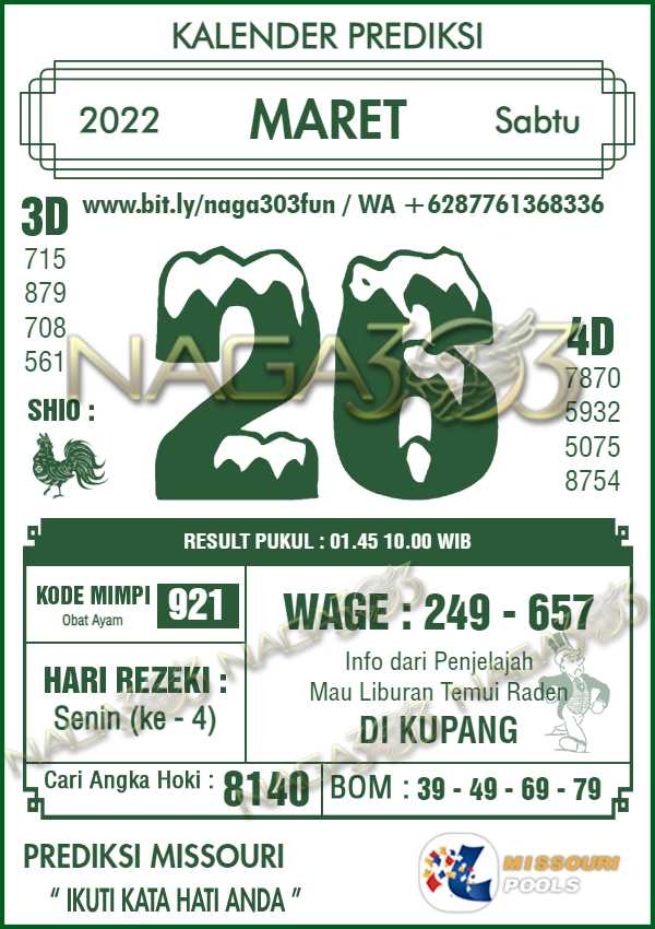 Prediksi Missouri Pools Senin 28 Maret 2022 | Web Toto Naga303