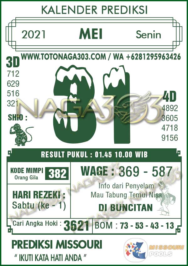Agen Judi Online Terbesar & Terpercaya, Kami biasa memberikan info yaitu Prediksi MISSOURI POOLS, dimana prediksi ini telah kami racik terlebih