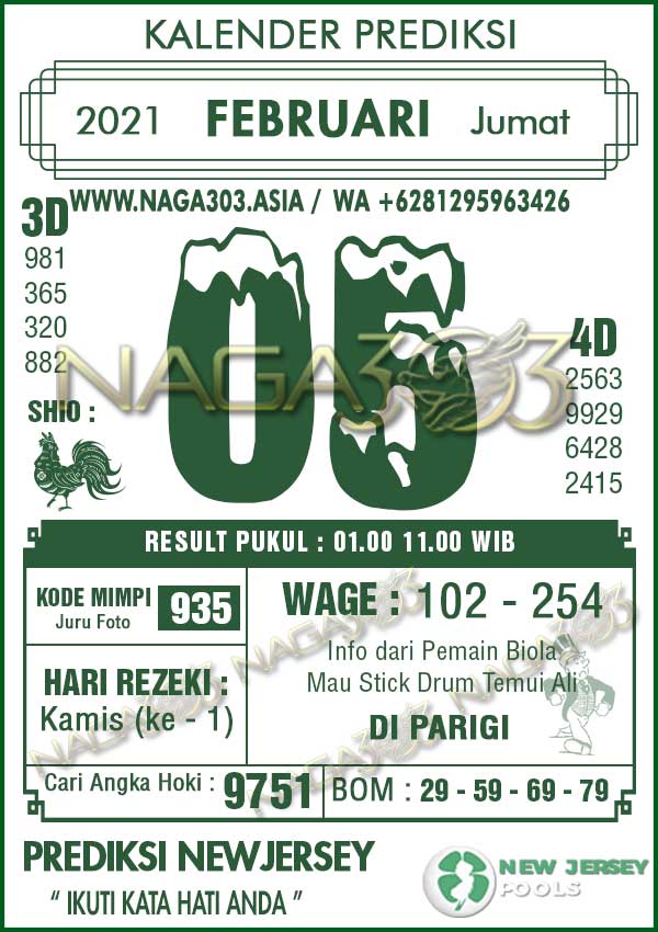 Prediksi Newjersey Pools Jumat 05 Februari 2021
