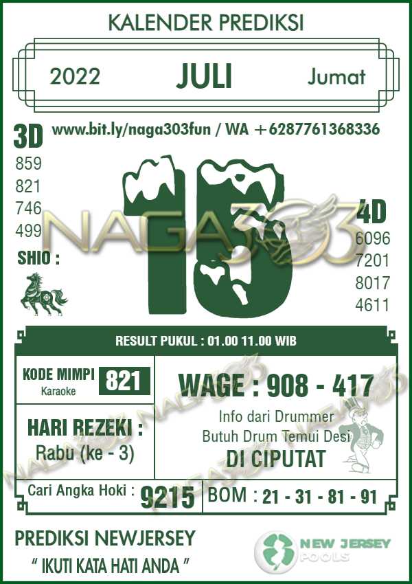 Prediksi Newjersey Pools Jumat 15 Juli 2022
