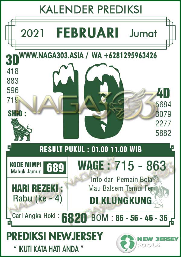 Prediksi Newjersey Pools Jumat 19 Februari 2021 | Web Toto Naga303