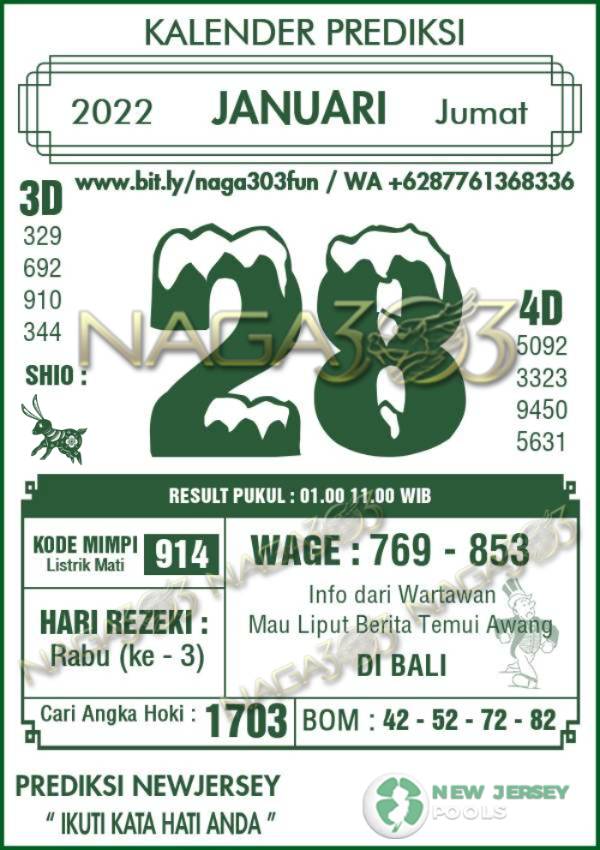 Prediksi Newjersey Pools Jumat 28 Januari 2022
