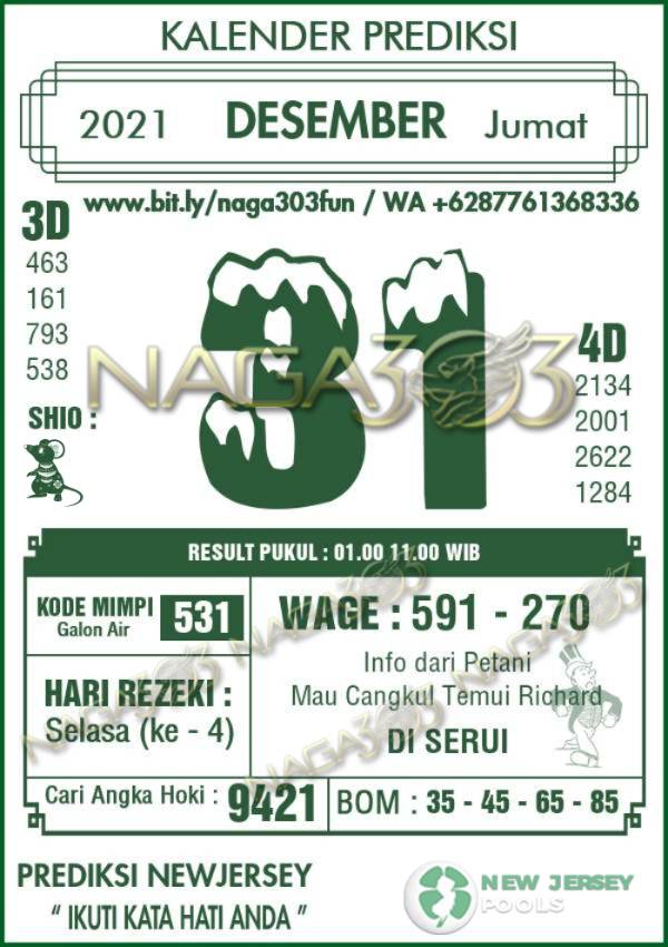 Prediksi Newjersey Pools Jumat 31 Desember 2021
