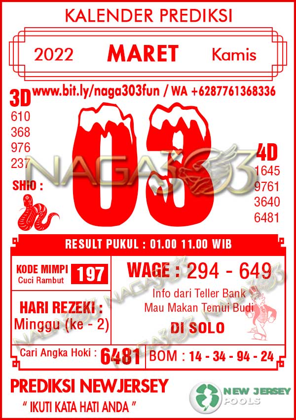 Prediksi Newjersey Pools Kamis 03 Maret 2022