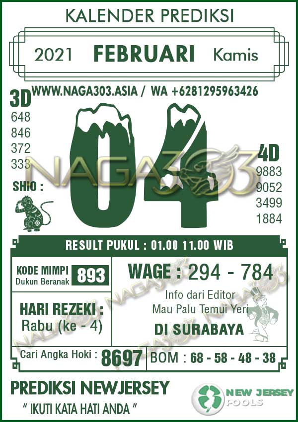 Prediksi Newjersey Pools Kamis 04 Februari 2021 | Web Toto Naga303