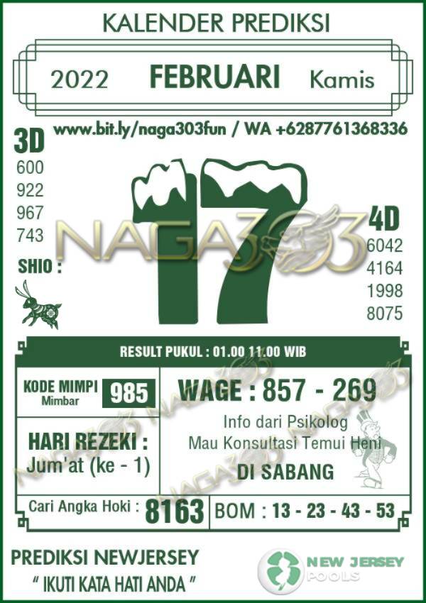 Prediksi Newjersey Pools Kamis 17 Fabruari 2022 | Web Toto Naga303