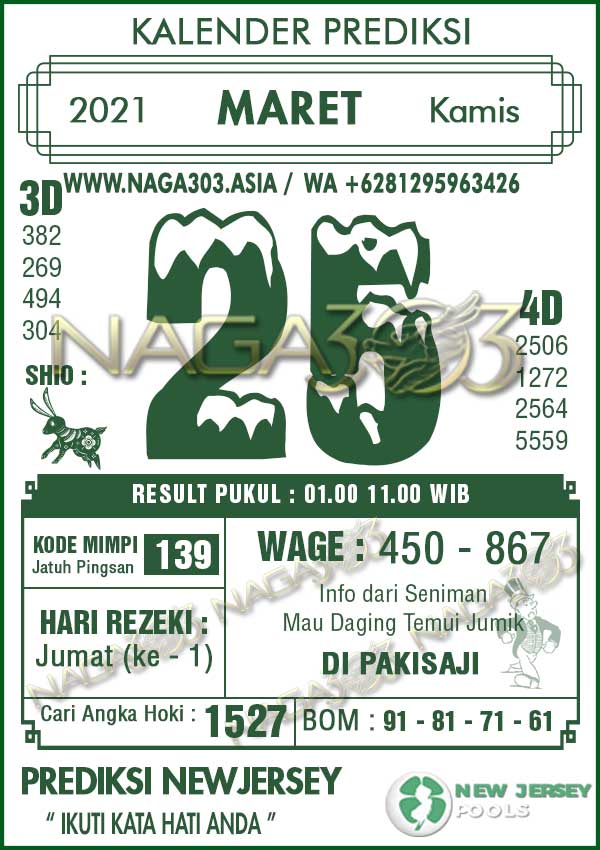 Prediksi Newjersey Pools Kamis 25 Maret 2021 | Web Toto Naga303