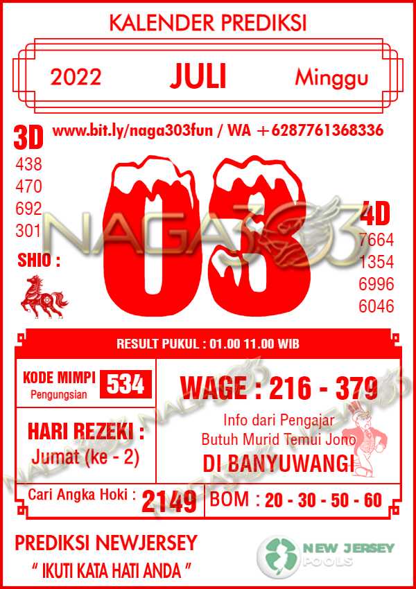 Prediksi Newjersey Pools Minggu 03 Juli 2022