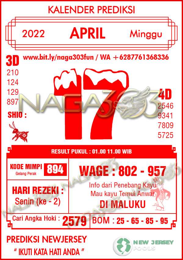 Prediksi Newjersey Pools Minggu 17 April 2022