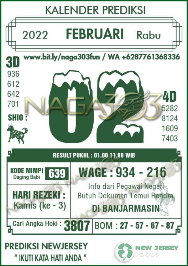 Prediksi Newjersey Pools Rabu 02 Februari 2022 | Web Toto Naga303