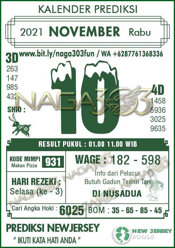 Prediksi Newjersey Pools Rabu 10 November 2021