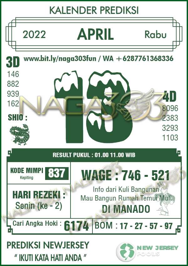 Prediksi Newjersey Pools Rabu 13 April 2022 | Web Toto Naga303