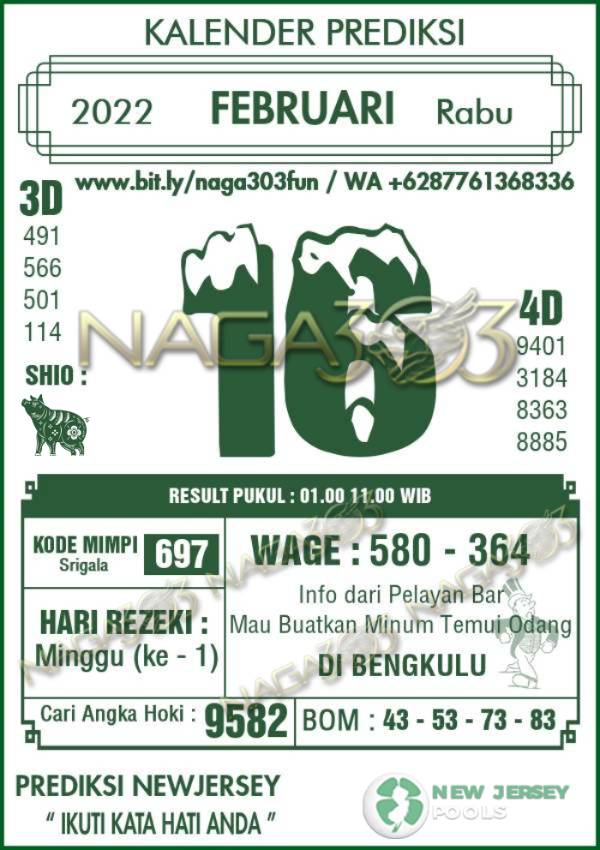 Prediksi Newjersey Pools Rabu 16 Februari 2022 | Web Toto Naga303