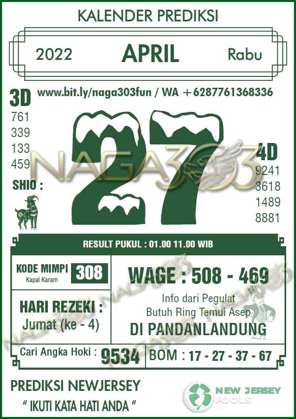Prediksi Newjersey Pools Rabu 27 April 2022 | Web Toto Naga303