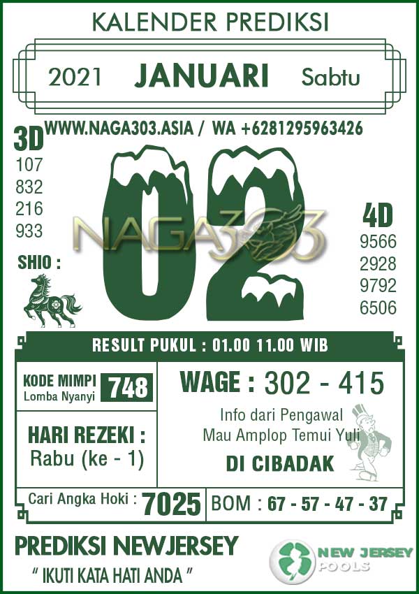 Prediksi Newjersey Pools Sabtu 02 Januari 2021