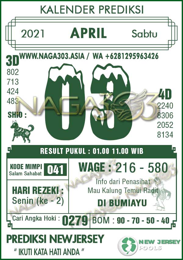 Prediksi Newjersey Pools Sabtu 03 April 2021 | Web Toto Naga303