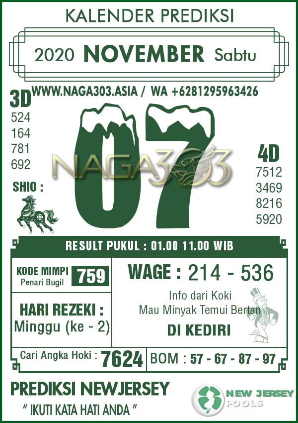 Prediksi Newjersey Pools Sabtu 07 November 2020 | Web Toto Naga303