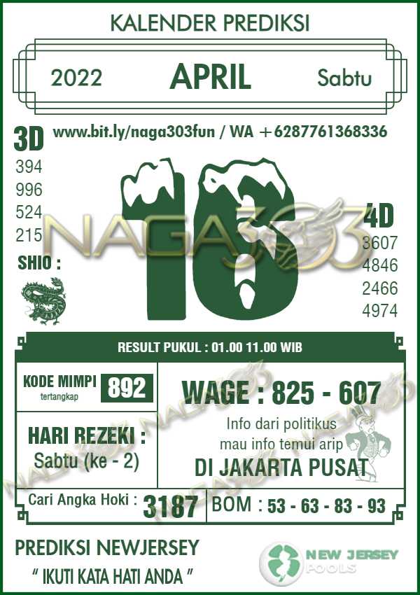 Prediksi Newjersey Pools Sabtu 16 April 2022 | Web Toto Naga303