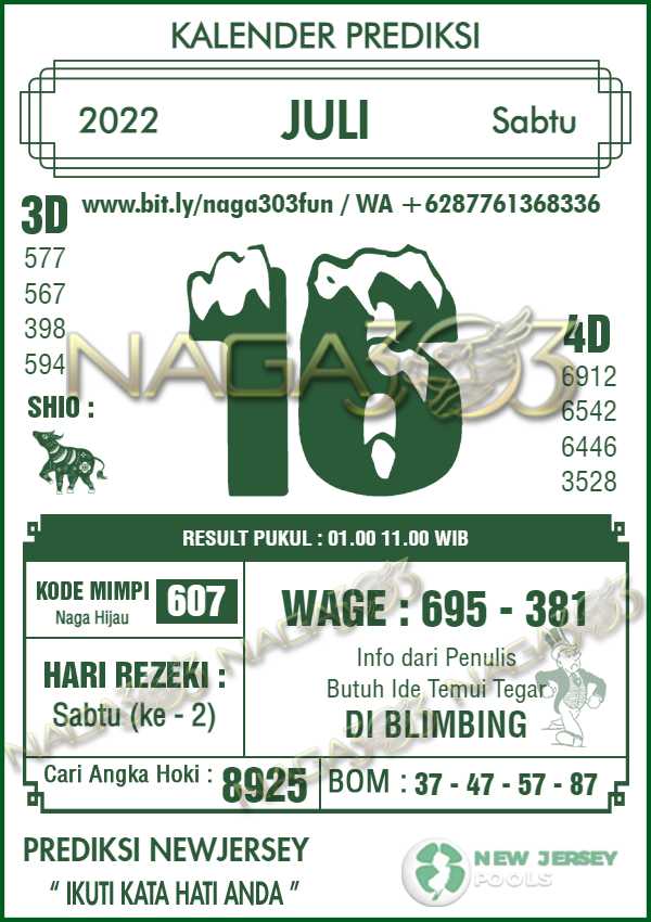 Prediksi Newjersey Pools Sabtu 16 Juli 2022