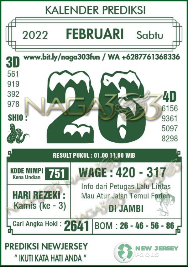 Prediksi NewJersey Pools Sabtu 26 Februari 2022 | Web Toto Naga303