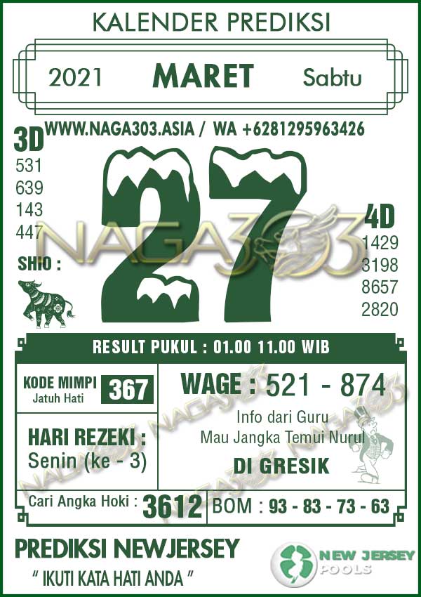 Prediksi Newjersey Pools Sabtu 27 Maret 2021