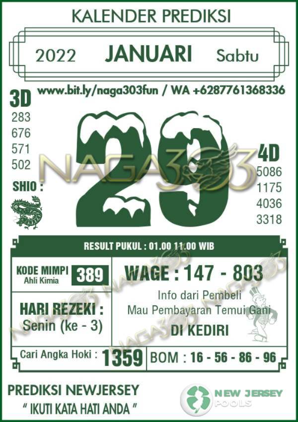 Prediksi Newjersey Pools Sabtu 29 Januari 2022 | Web Toto Naga303