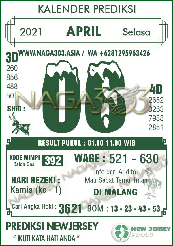 Prediksi Newjersey Pools Selasa 06 April 2021 | Web Toto Naga303