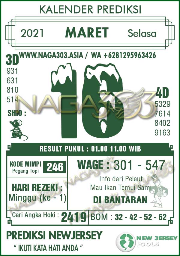 Prediksi Newjersey Pools Selasa 16 Maret 2021 | Web Toto Naga303