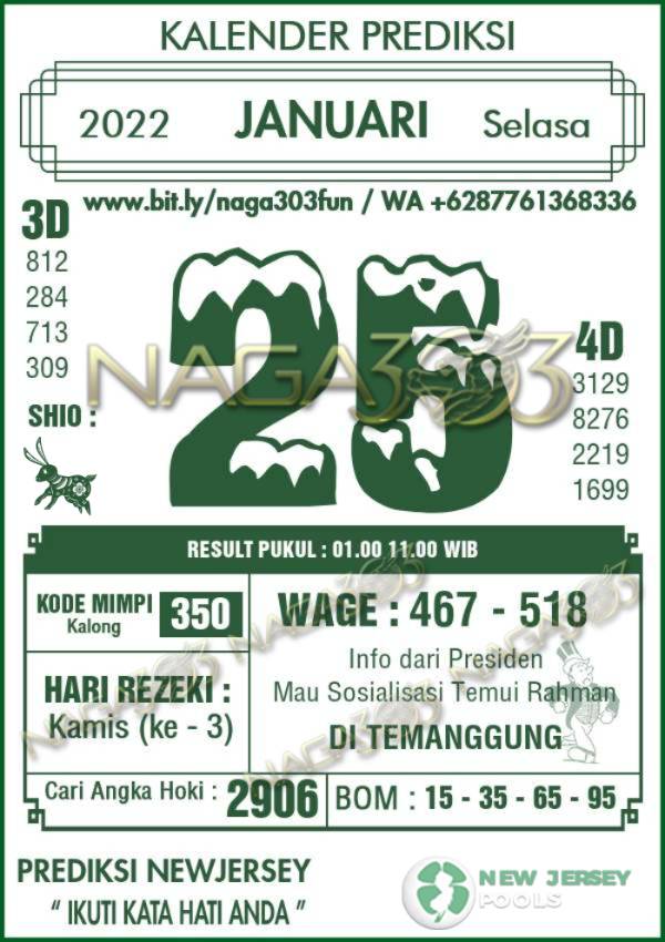 Prediksi Newjersey Pools Selasa 25 Januari 2022
