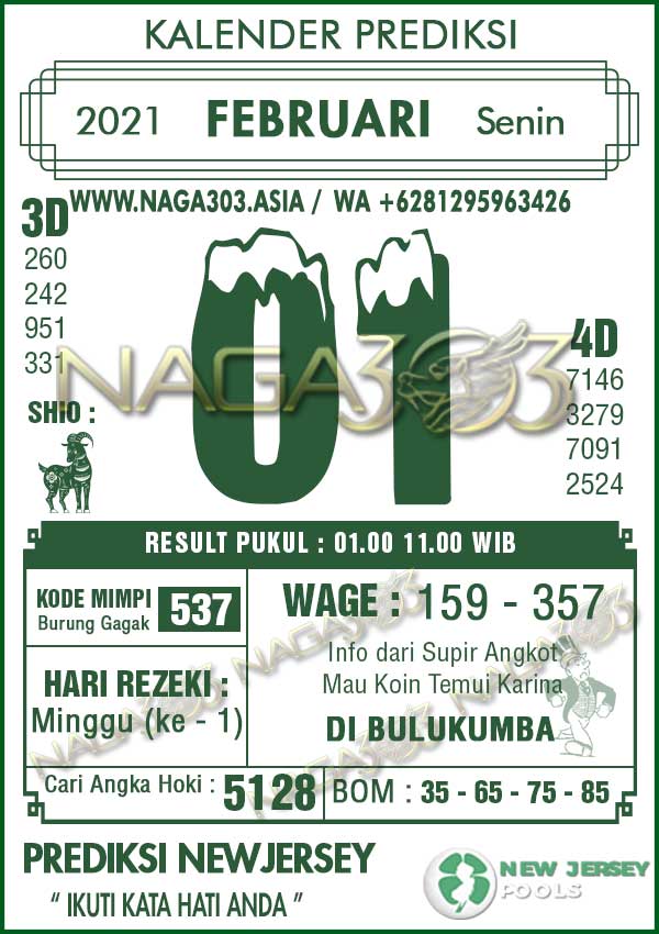Prediksi Newjersey Pools Senin 01 Februari 2021