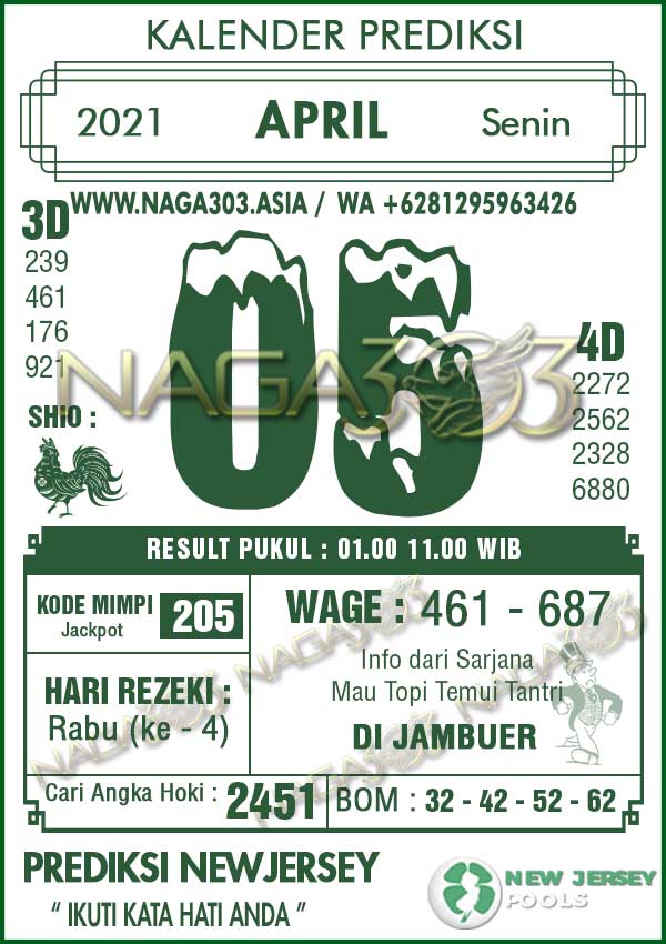 Prediksi Newjersey Pools Senin 05 April 2021 | Web Toto Naga303
