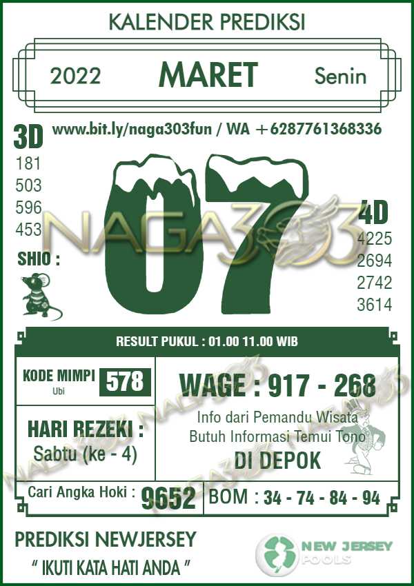 Prediksi Newjersey Pools Senin 07 Maret 2022 | Web Toto Naga303