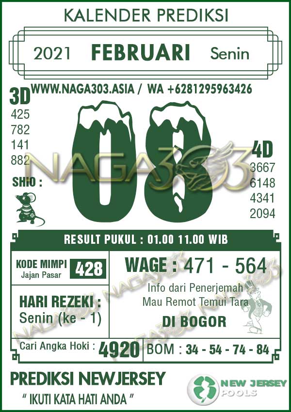 Prediksi Newjersey Pools Senin 08 Februari 2021 | Web Toto Naga303