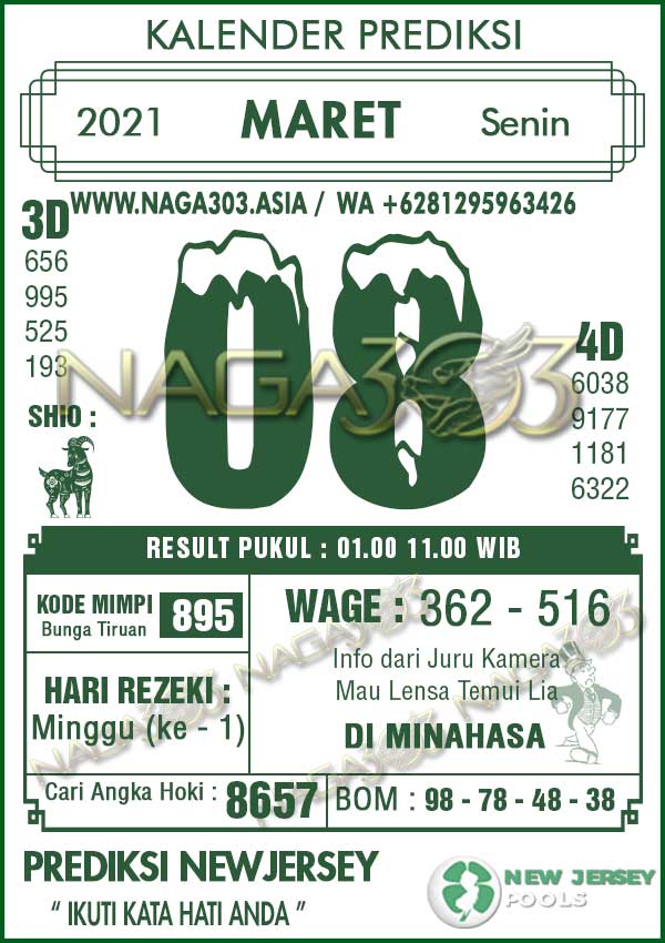 Prediksi Newjersey Pools Senin 08 Maret 2021