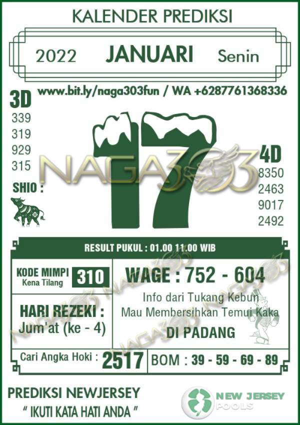 Prediksi Newjersey Pools Senin 17 Januari 2022